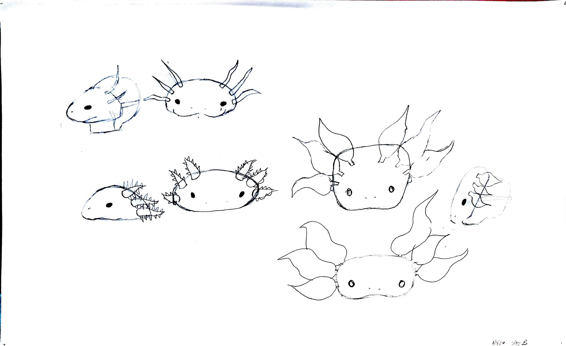 One of the worlds cutest and most beautiful creatures is the axolotl. This magnificent creature is almost reminiscent of that of a dragon. This salamander is the perfect little creature to base this project off of. There are just enough features to make it difficult, but at the same time the simplicity of the axolotl makes this design difficult.