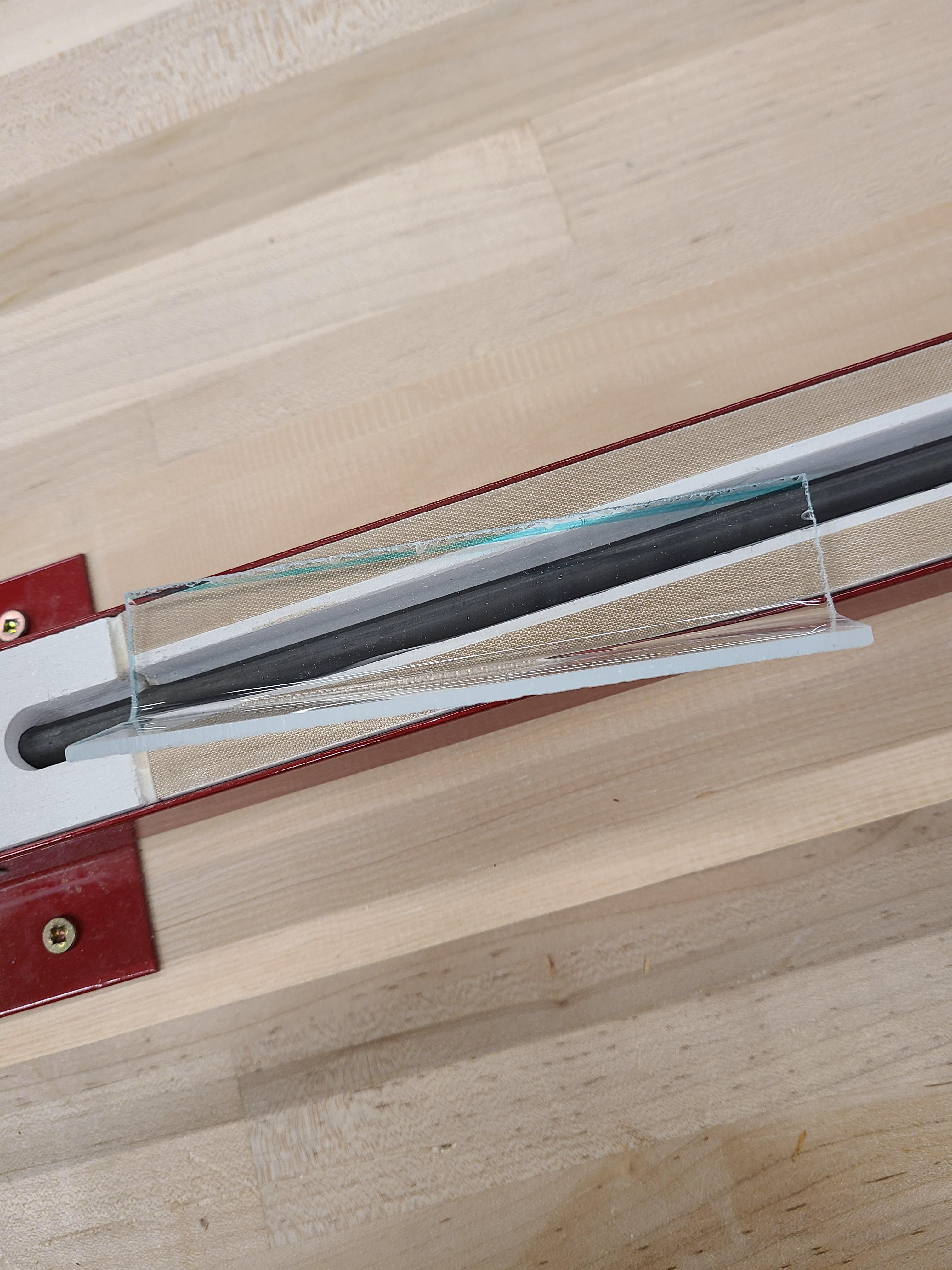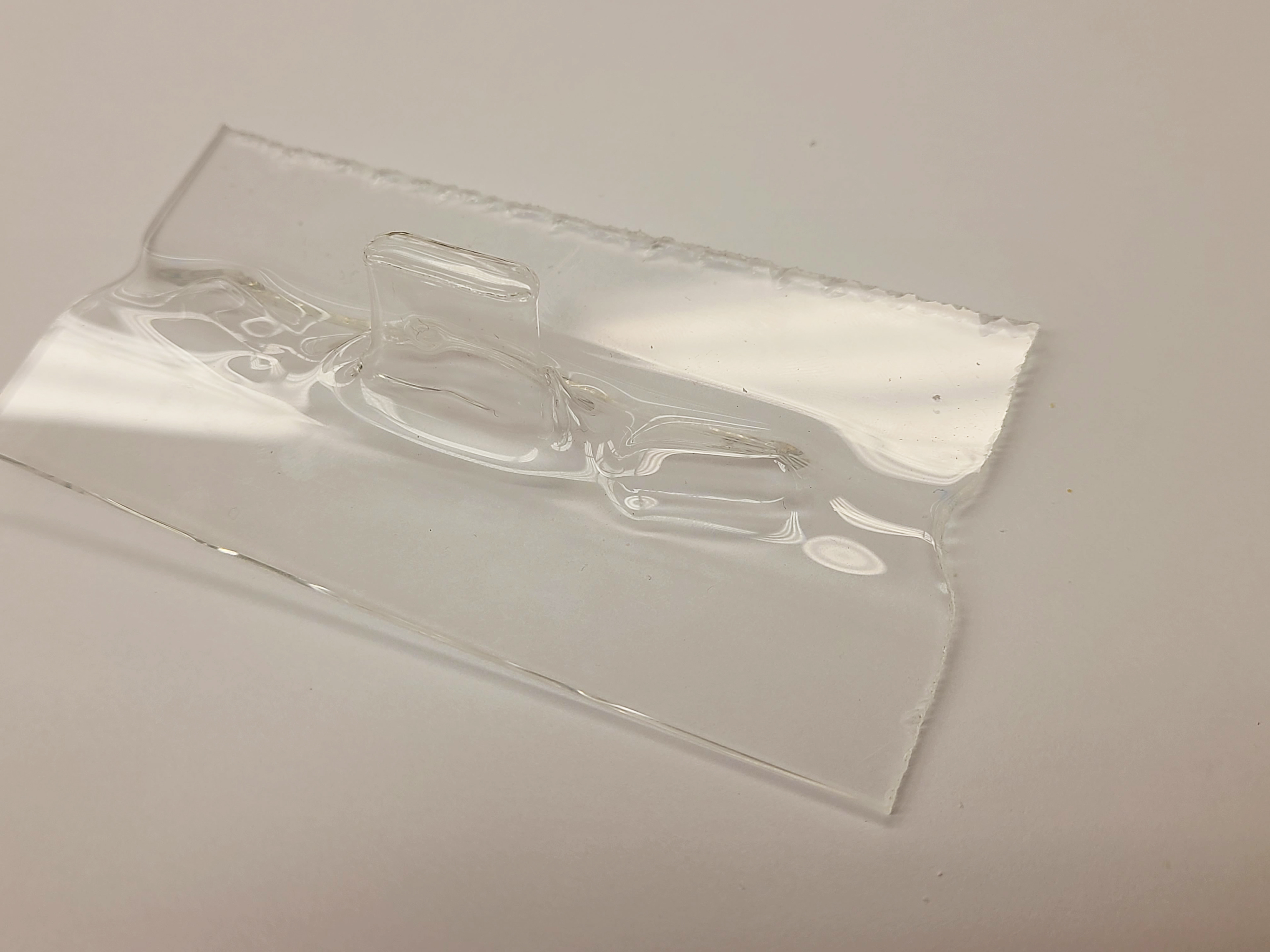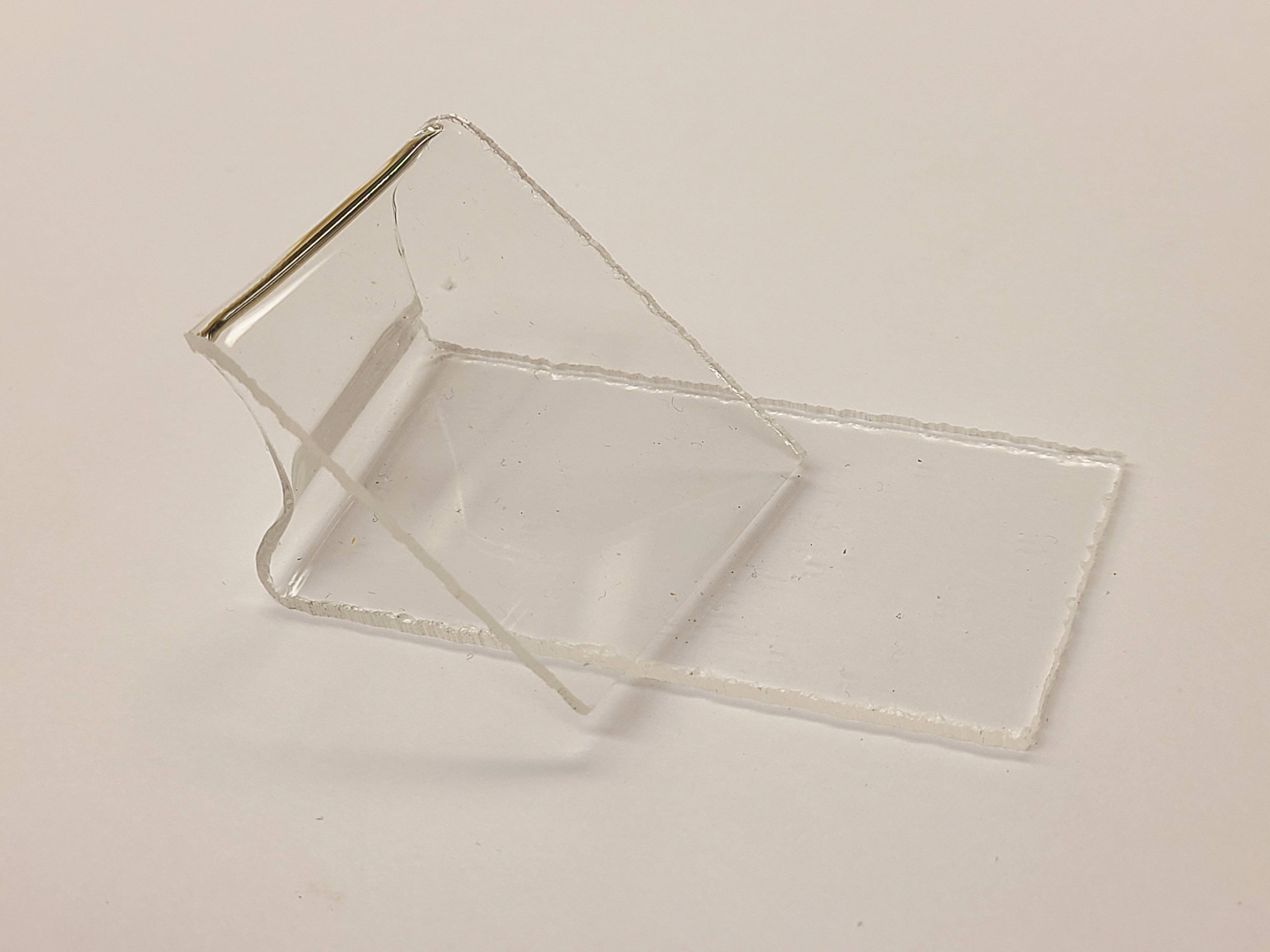 Using the heat from the strip bender pictured here, the acrylic material was bent, stretched, and warped in many different ways. This was a quick and efficient way to create the shapes that would best fit with the crystals.
